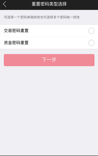 在忘记密码的情况下可办理密码重置业务。密码重置包括交易密码和资金密码重置,交易密码用于登录交易软件,资金密码用于银证转账。请根据账户具体情况选择重置密码的类型,也可以同时重置两种密码。